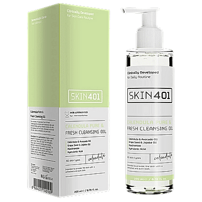 Skin401 Kalendula Saf & Tazeleyici Cilt Temizleme Yağı, bitkisel yağlar ve özlerle zenginleştirilmiş bir üründür. Cildin fazla kirini, yağını ve makyajını nazikçe temizlemeye yardımcı olur. Cildin arınmış, parlak ve tazelenmiş bir görünüm kazanmasını sağlar.